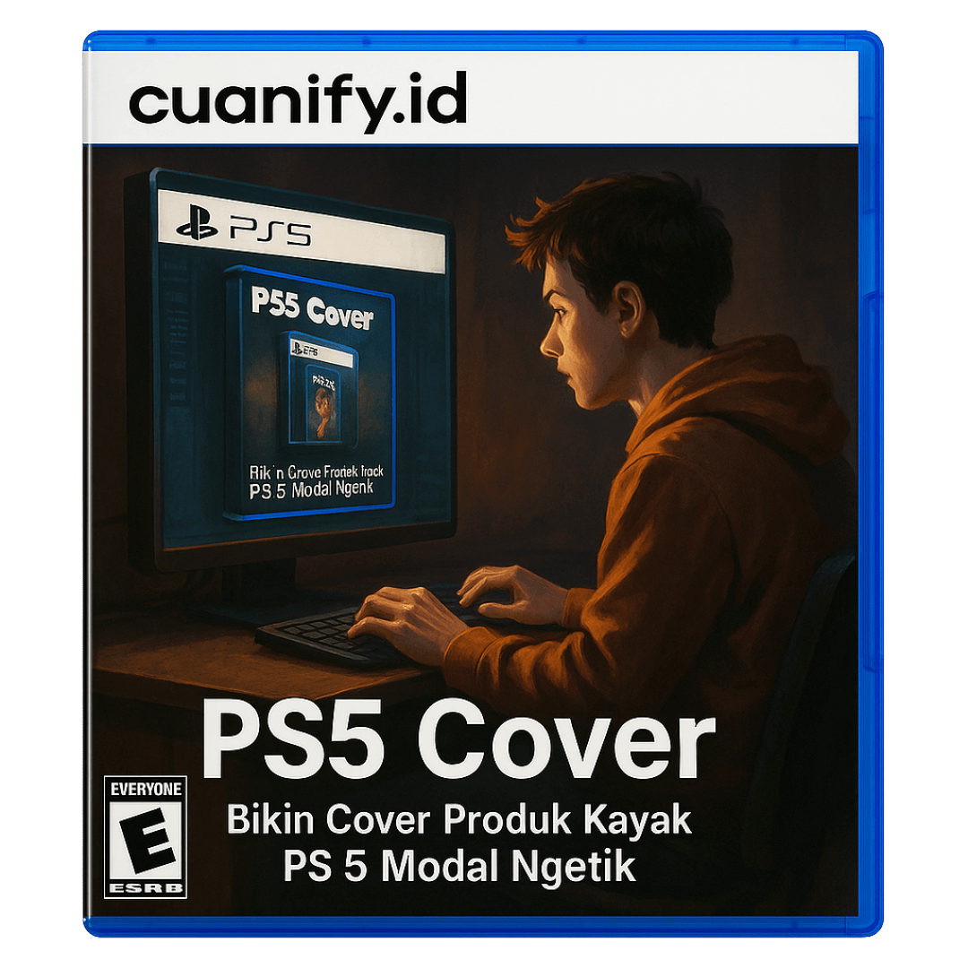 Sebuah AI Generator yang secara otomatis mengubah nama produk digital kamu menjadi visual cover ala PlayStation 5, lengkap dengan frame PS5, rating ESRB, judul, tagline, hingga logo penerbit (cuanify.id atau custom brand kamu sendiri).